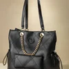 - Διαθέτει “χεράκια” δερματίνης για τον ώμο αλλά και κοντές αλυσίδες για κράτημα στο χέρι αλλά και για έξτρα στιλ.